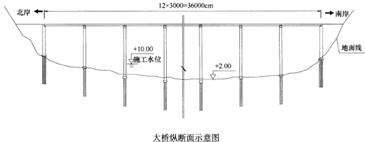 因?yàn)樗惠^深,但該河段不通航,且施工單位無(wú)大型船只;且施工單位有鋼管、型管、貝雷架等材料,所以可搭設(shè)棧橋和平臺(tái)。