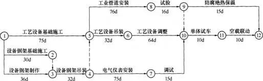 3.施工單位調整計劃后能保證按原計劃工期實現。雖然設備鋼架制作由于建設單位的原因拖延了10天,但工藝設備吊裝上有7天自由時差,沖抵后,只是影響了總工期3天,可以通過壓縮后續關鍵線路上關鍵工作(工藝設備調整)的持續時間3天來達到按時完成施工任務的目的。