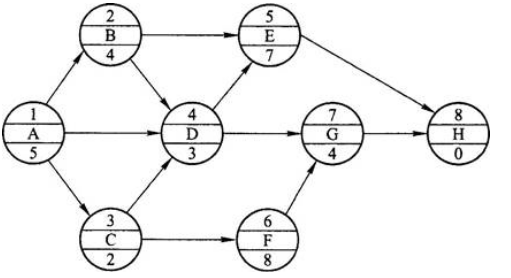 解析:在上述所列各選項中,單代號網絡計劃線路長度分別為19天,16天,12天,14天,19天,故A、E選項所列線路持續時間最長,1-2-4-5-8和1-3-6-7-8為關鍵線路。故選項A、E正確。