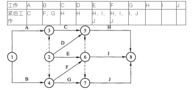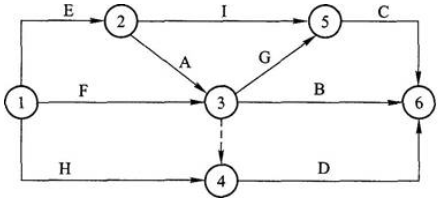 解析:有①、②兩個起點,G的緊后工作為I和J,節點編號⑥指向節點⑤,圖有誤。