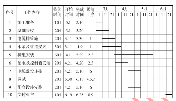 從橫道圖及背景可以看出,每天應(yīng)該完成 2000/20=100 米,3 月 22 日是電纜排線開(kāi)工