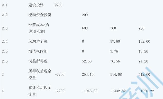 2.若該項(xiàng)目的建設(shè)投資為 2200 萬元(包含可抵扣進(jìn)項(xiàng)稅 200 萬元),建設(shè)投資在建設(shè)期均衡投入。