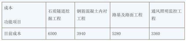 經(jīng)測算,該四個功能項(xiàng)目的目前成本見表 2.2,其目標(biāo)總成本擬限定在 18700 萬元。
