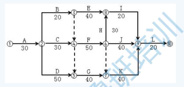 某工程項(xiàng)目,發(fā)包人和承包人按工程量凊單計(jì)價(jià)方式和《建設(shè)工程施工合同(示范文本)》(GF-2017-0201)簽訂了施工合同,合同工期 180 天。合同約定:措施費(fèi)按分部分項(xiàng)工程費(fèi)的25%計(jì)取;管理費(fèi)和利潤為人材機(jī)費(fèi)用之和的 16%,規(guī)費(fèi)和稅金為人材機(jī)費(fèi)用、管理費(fèi)與利潤之和的 13%。開工前,承包人編制并經(jīng)項(xiàng)目監(jiān)理機(jī)構(gòu)批準(zhǔn)的施工網(wǎng)絡(luò)進(jìn)度計(jì)劃如圖 4-1 所示:
