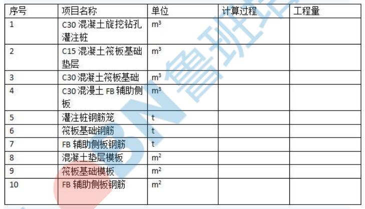 1.根據(jù)該多管式(鋼內(nèi)筒)煙囪基礎(chǔ)施工圖紙、技術(shù)參數(shù)及參考資料,及答題卡表 6.1中給定的信息,按《房屋建筑與裝飾工程工程量計(jì)算規(guī)范》(GB50584-2013)的計(jì)算規(guī)則,在答題卡表 6.1“工程量計(jì)算表”中,列示計(jì)算該煙囪基礎(chǔ)分部分項(xiàng)工程量。(筏板上 8 塊 FB輔助側(cè)板的斜面在混凝土澆搗時必須安裝模板)。
