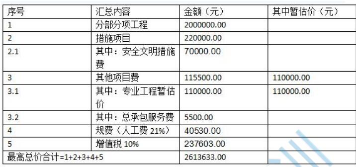 表 6.3 單位工程最高投標(biāo)限價(jià)匯總表(上述問題中提及的各項(xiàng)費(fèi)用均不包含增值稅可抵扣進(jìn)項(xiàng)稅額。所有計(jì)算結(jié)果均保留兩位小數(shù)。)