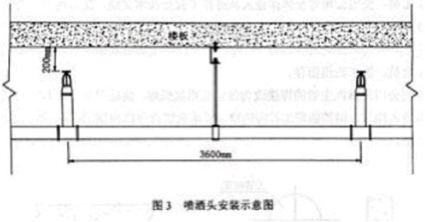 2.因: ( 1 )噴頭運(yùn)到現(xiàn)場外觀檢查后立即與管道同時安裝,錯誤,應(yīng)在安裝前進(jìn)行密封性能試驗,并且在系統(tǒng)試壓、洗沖 合格后進(jìn)行。 (2 )噴頭濺水盤距頂棚為 200mm ,錯誤;應(yīng)為 75~150mm ; (3 )兩噴頭間距為 3.6m,錯誤;停車庫為中危險二級,噴頭間距不應(yīng)超過 3.4m。