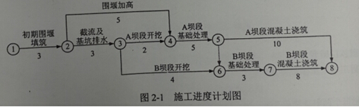 由承包人編制,并經(jīng)監(jiān)理人批準的施工進度計劃如圖2-1所示(單位:月,每月按30天計):