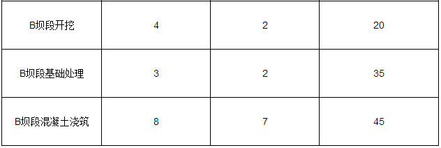 2. 圍堰加高、截流及基坑排水、B壩段基礎(chǔ)處理各壓縮1個月;115萬元。