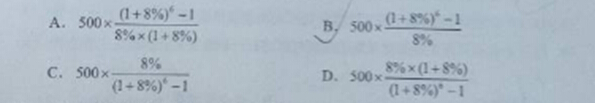 32. 某投資者6年內每年末投資500萬元,若基準收益率為8%,復利計息,年末可一次性收回的本利和為( )萬元