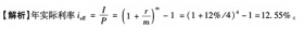 8.【2014年真題】名義利率12%,每季復利計息一次,則年實際利率為( )。