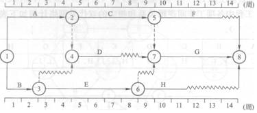 46、 某工程雙代號時標網絡計劃如下圖所示,則該進度計劃的關鍵線路是( ?。?。