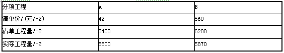 萬(wàn)元,材料費(fèi)504.4萬(wàn)元,機(jī)械使用費(fèi)l55.3萬(wàn)元,施工措施費(fèi)l04.2萬(wàn)元,施工管理費(fèi)46.2萬(wàn)元,稅金30.6萬(wàn)元),然后將成本預(yù)測(cè)結(jié)果下達(dá)給項(xiàng)目經(jīng)理部進(jìn)行具體施工成本管理。總承包施工合同是以工程量清單為基礎(chǔ)的固定單位合同。合同約定當(dāng)A分項(xiàng)工程、B分項(xiàng)工程實(shí)際工程量與清單工程量差異幅度在±5%以內(nèi)的按清單價(jià)結(jié)算,超出幅度大于5%時(shí)