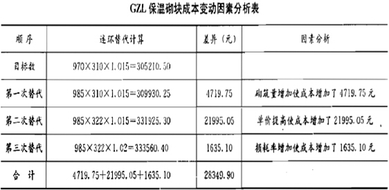 (2)三個因素的替代排序如下:砌筑量、單價、損耗率。