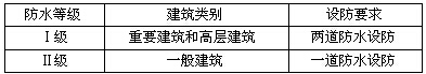 根據(jù)《屋面工程技術(shù)規(guī)范》GB 50345-2012 第 3.0.5 條規(guī)定,屋面防水工程應(yīng)根據(jù)建筑物的類別、重要程度、使用功能要求確定防水等級,并應(yīng)按相應(yīng)等級進行防水設(shè)防;時防水有特殊要求的建筑屋面,應(yīng)進行專項防水設(shè)計。屋面防水等級和設(shè)防要求應(yīng)符合下表的規(guī)定。