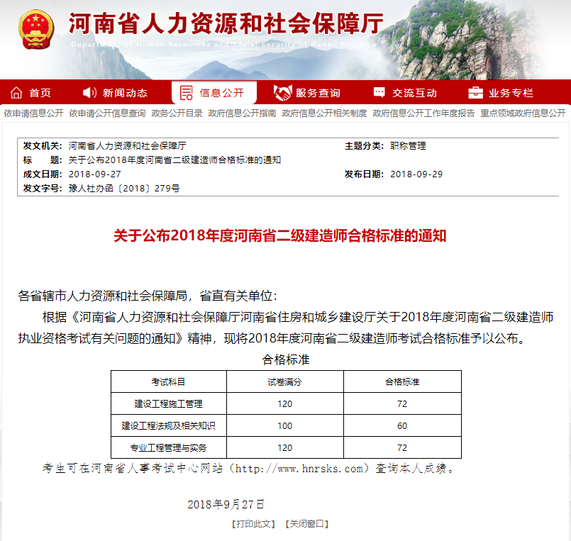 今年河南省二級建造師合格標準公布網站改成了河南省人力資源和社會保障廳,合格標準比往年大幅度提升,如下: