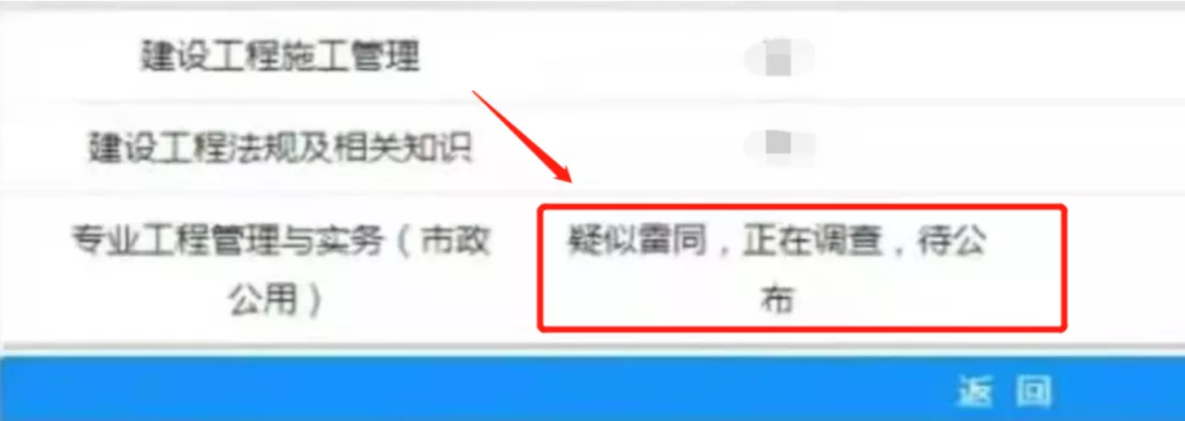 目前二建考試成績正在陸續公布,在某省份考生二建成績查詢界面有顯示 “疑似雷同,正在調查” ,是否與泄題相關暫不明確,但能確定的是工作人員正在針對“作弊行為”進行調查。