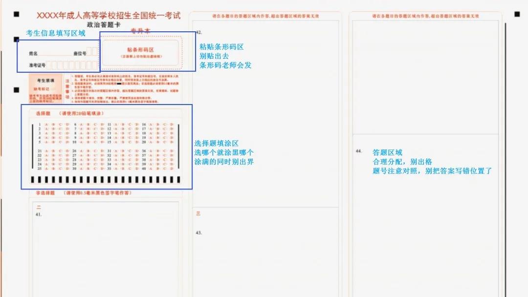 * 成考為筆試,但是需要把答案填寫在答題卡上;