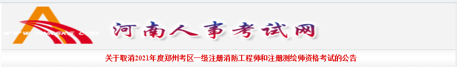 關于取消2021年度鄭州考區一級注冊消防工程師和注冊測繪師資格考試的公告
