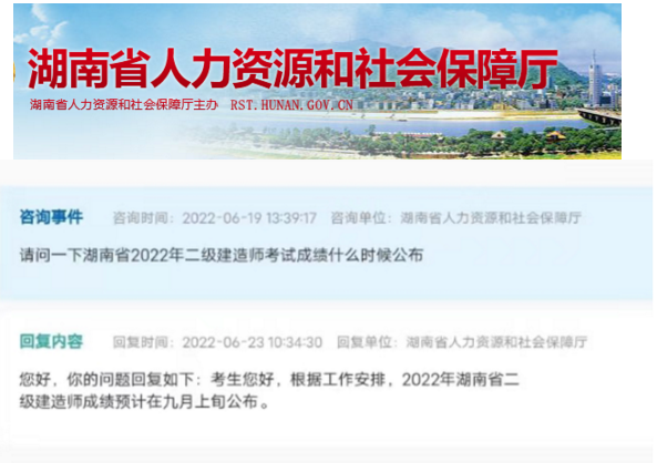 二建考后,不少考生在后臺咨詢二建成績何時公布,之前小編發布的文章里有公布山西、遼寧、廣東、廣西、黑龍江等地的成績發布時間。近日,根據湖南省人力資源和社會保障廳在線問答得知,2022年湖南二建考試成績成績預計在9月上旬公布,小編將詳情整理如下,快來一起來看看吧~