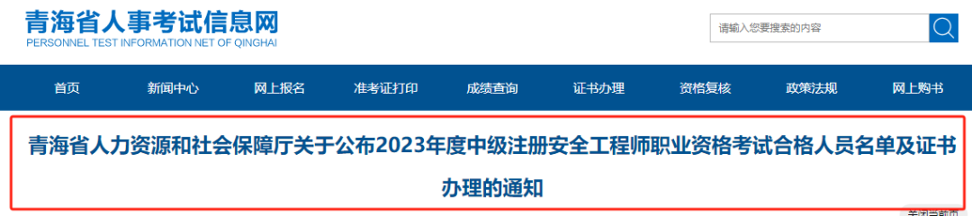 2023年度中級(jí)注冊(cè)安全工程師職業(yè)資格考試合格人員名單及證書辦理的通知