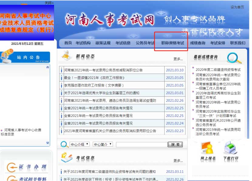 一、登錄河南人事考試網(wǎng) 點擊職稱資格考試 點擊進入http://www.hnrsks.com/Default.aspx