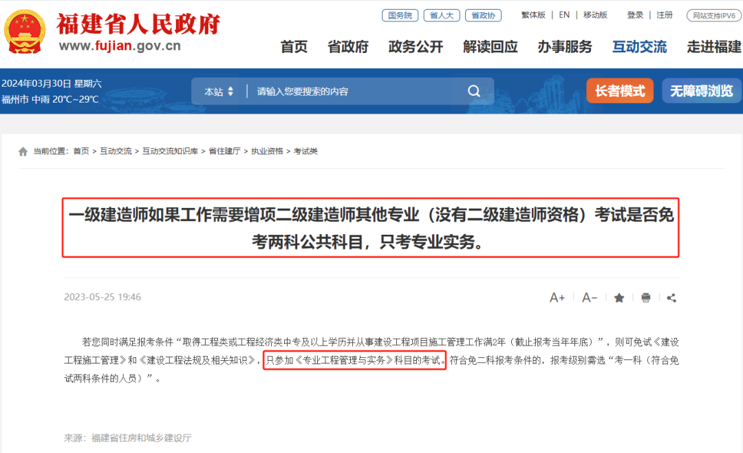 已持有一級造價工程師、一級建造師、監理工程師等證書,準備在福建省報考二建的考生有福了!