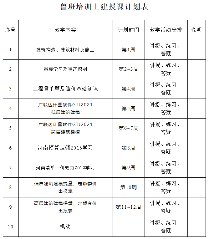 備注:三個月培訓期,共12周,每周按5天計劃,教學中根據情況可做調整。