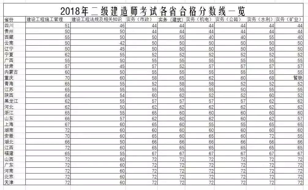 2018二級(jí)建造師各省市合格標(biāo)準(zhǔn)線陸陸續(xù)續(xù)已公布,每個(gè)省份的標(biāo)準(zhǔn)都有自己的特點(diǎn),對(duì)比合格標(biāo)準(zhǔn)線幾家歡喜幾家憂,到底二建通過(guò)率如何呢,跟著二保一起來(lái)看看吧!
