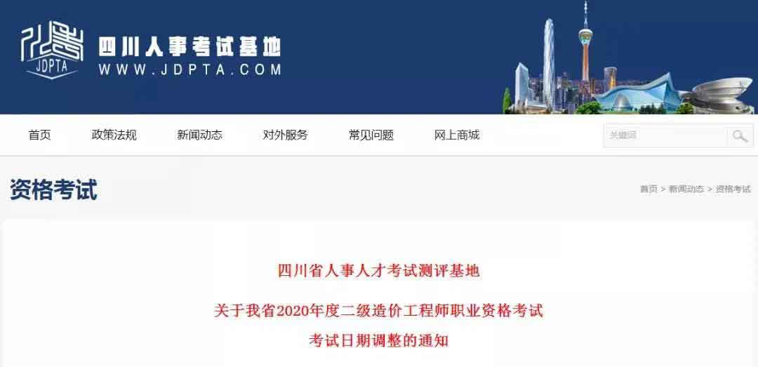 我省2020年度二級造價工程師職業(yè)資格考試其他考試相關事宜,按《四川省人力資源和社會保障廳關于做好我省2020年度二級造價工程師職業(yè)資格考試考務工作的通知》(川人社函〔2020〕655號)、《四川省2020年度二級造價工程師職業(yè)資格考試考試須知》執(zhí)行。該項考試期間疫情防控注意事項將根據(jù)上級部門的要求和部署另行公告,請關注四川省人力資源和社會保障廳官網(wǎng)(http://rst.sc.gov.cn)“人事考試”專欄和四川人事考試基地網(wǎng)(http://www.jdpta.com)。