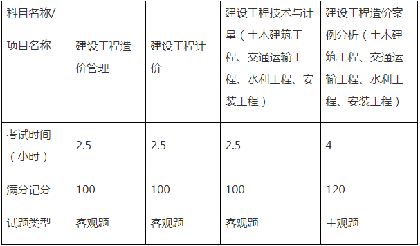《建設(shè)工程造價管理》(客觀題)、《建設(shè)工程計價》(客觀題)、《建設(shè)工程技術(shù)與計量》(客觀題)和《建設(shè)工程造價案例分析》(主觀題)4個科目。其中 《建設(shè)工程造價管理》和《建設(shè)工程計價》為基礎(chǔ)科目;