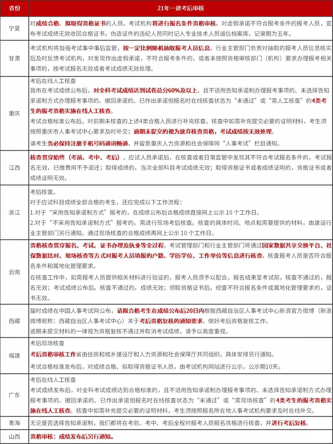 注: 以上內容整合自各地報名文件,具體考后審查事宜,請以當地成績公布后靠后審核通知為準。
