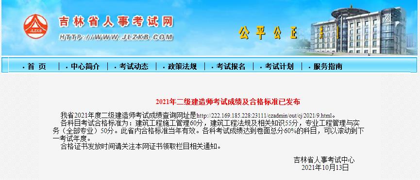 吉林:2021年二級建造師合格標準發布!