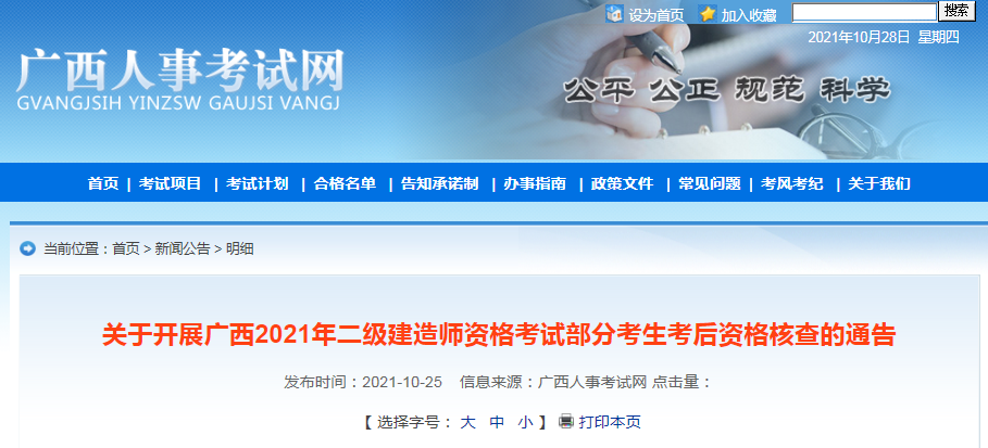 根據《關于2021年度廣西二級建造師執業資格考試考務工作的通知》(桂人社辦發〔2021〕10號)及《人力資源社會保障部人事考試中心關于印發<專業技術人員資格考試報名證明事項告知承諾制試點工作實施方案>的通知》(人考中心函〔2019〕26號)精神,我院對考生的報考條件再次進行審核,發現部分考生填寫和提交的學歷信息存在不一致的情況。為維護考試公平公正,保護考生權益,現將我區2021年二級建造師執業資格考試部分考生考后資格核查有關事項通知如下: