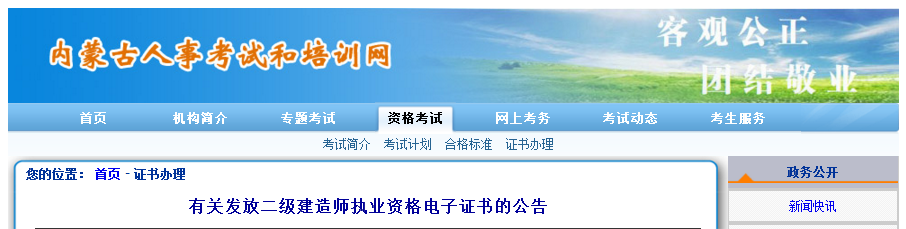 全部科目考試成績合格的應試人員,可登錄“內蒙古政務服務網(zwfw.nmg.gov.cn),登錄系統后,在用戶中心-我的證照里查看和下載證書,考生也可登錄蒙速辦APP,在我的卡包-個人證照中查看證書信息。