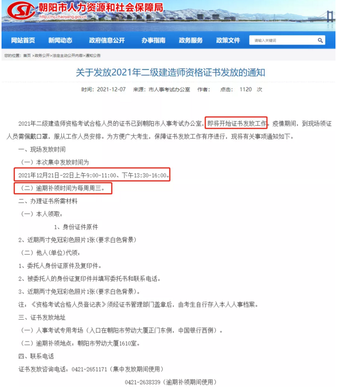 2021年吉林二建證書12月8日開始領取,原則上禁止他人代領。