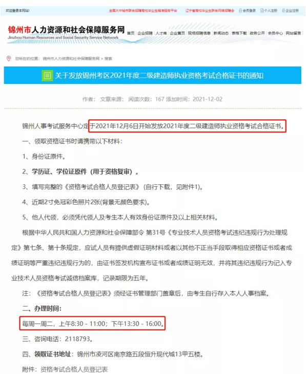 新增7地有二建領證消息啦,包括吉林省,遼寧省大連市、鞍山市、遼陽市、錦州市等,領證時間和需攜帶材料如下,大家提前準備好材料,不要錯過領證時間~