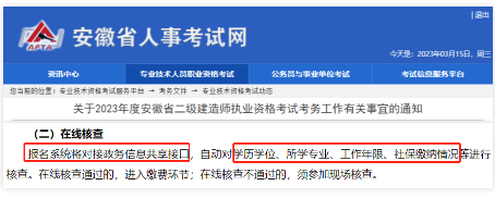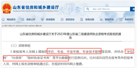 審核報考人員網(wǎng)上填報的學歷、專業(yè)、畢業(yè)年限、專業(yè)技術(shù)職稱等信息,并結(jié)合“學信網(wǎng)”“社保庫”“臨時執(zhí)業(yè)證書庫”等平臺數(shù)據(jù)進行信息比對。
