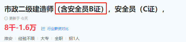 不僅在公司內部,而且在找工作時,看得出來建造師加上安全B證也是很加分的: