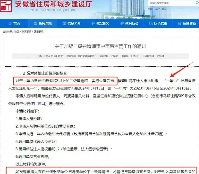 頻繁變更注冊的建造師會被納入“重點監管名單”,例如,安徽省規定一年內重新注冊超過4次的二建人員,需接受人工審查,審查期間不得參與任何項目投標。