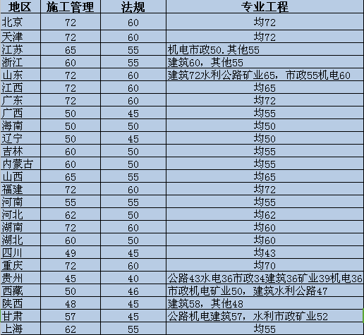 2016年二級建造師合格線最低34分