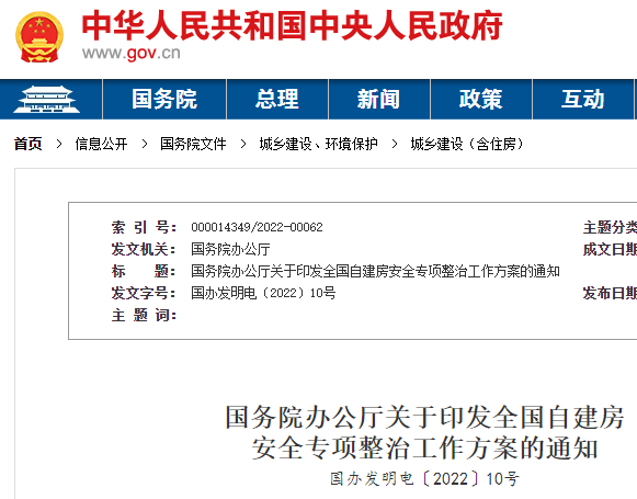 國務(wù)院辦公廳關(guān)于印發(fā)全國自建房安全專項(xiàng)整治工作方案的通知
