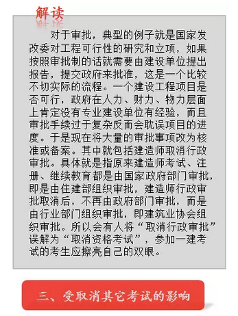 當然,國家取消這類考試也是為了改革、釋放創業創新活力。于是很多從事建筑的往往擔心政府將手腕伸向建造師考試,再加上周圍人不斷討論與煽動,不斷有考試在陸續被取消,建造師也就順其自然地成了人們討論的對象。