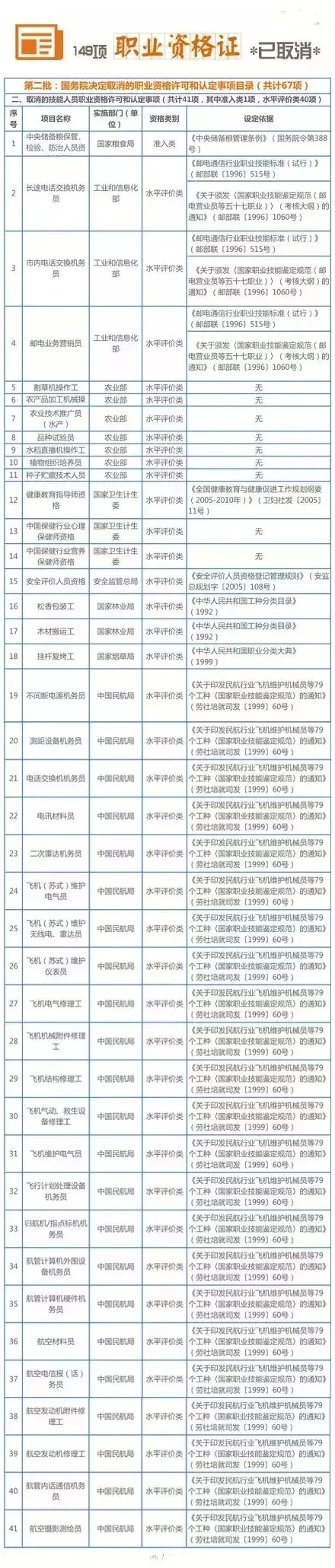 李克強總理在今年7月15日主持召開國務院常務會議。會議決定,在去年以來已取消149項職業資格的基礎上,再取消網絡廣告經紀人、注冊電子貿易師、全國外貿業務員、港口裝卸工等62項職業資格。還將繼續集中取消職業資格許可和認定事項。備考前要查清楚!