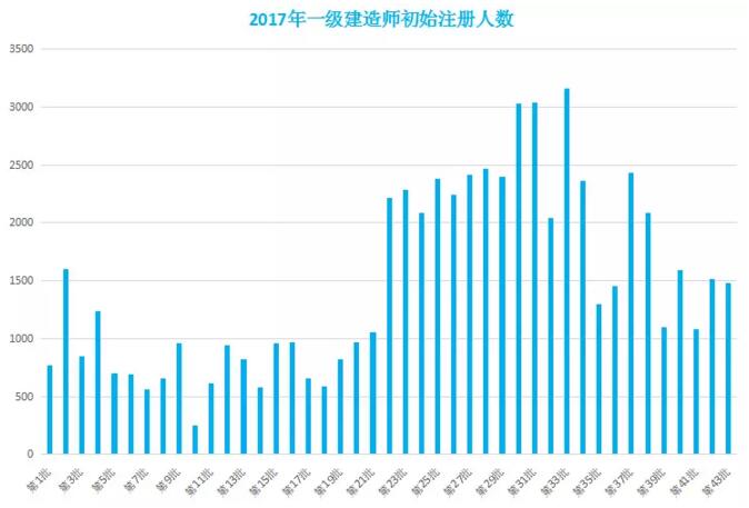 2017年,住建部公布了43批一級建造師注冊人員名單。截至12月29日,一年內一級建造師注冊人數超過7萬,其中初始注冊人數63397人。