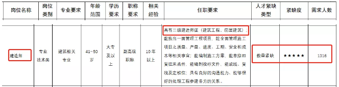 數量緊缺,緊缺度5顆星,需求:1316人。
