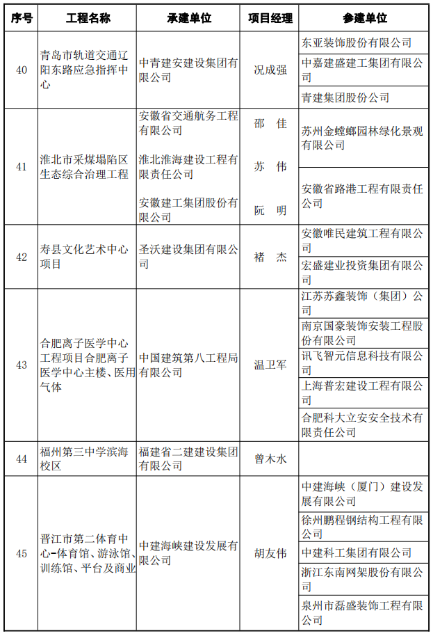 2020~2021年度第二批中國(guó)建設(shè)工程魯班獎(jiǎng)(國(guó)家優(yōu)質(zhì)工程)入選名單