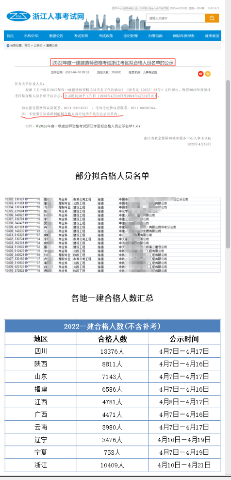 今日新增!浙江省2022年一級(jí)建造師合格人員剛剛公示,10409人擬合格,除四川外,又一個(gè)超萬人合格的地方。