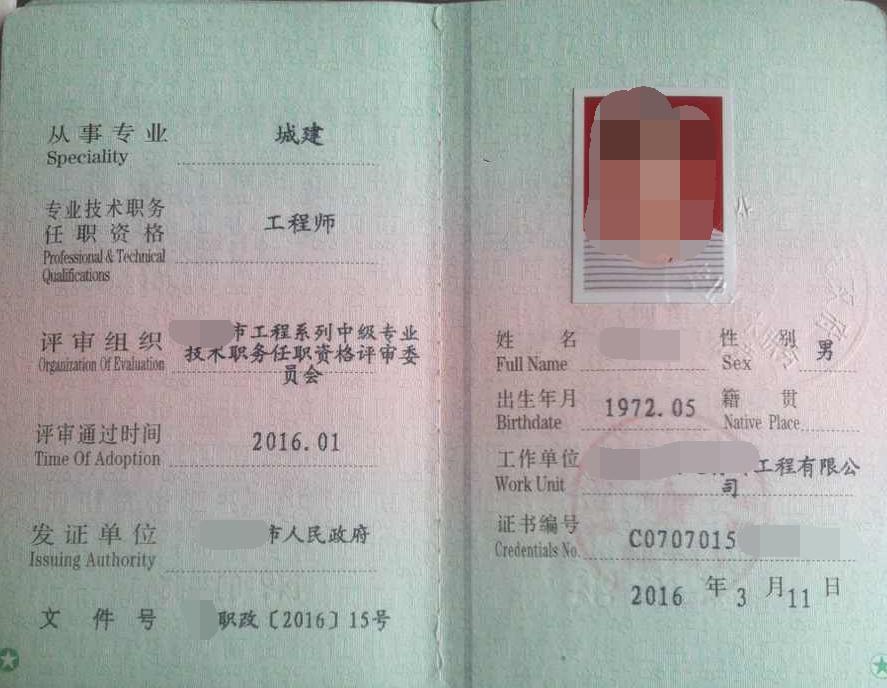 3)助理工程師證和論文(若有),助理工程師需同時(shí)提供評(píng)審表和紅頭文件,若沒(méi)有,無(wú)需提供助理工程師證件。